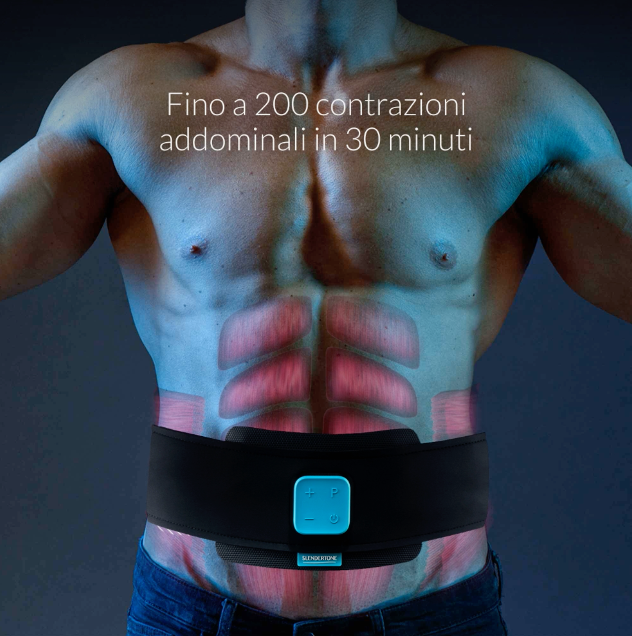 Slendertone sfrutta la tecnologia dell'elettrostimolazione muscolare (EMS) per penetrare e stimolare i muscoli del core più profondi. Riproduce le contrazioni naturali dei muscoli inviando impulsi dai cuscinetti in gel ai 4 muscoli addominali aumentandone il tono in poche settimane.